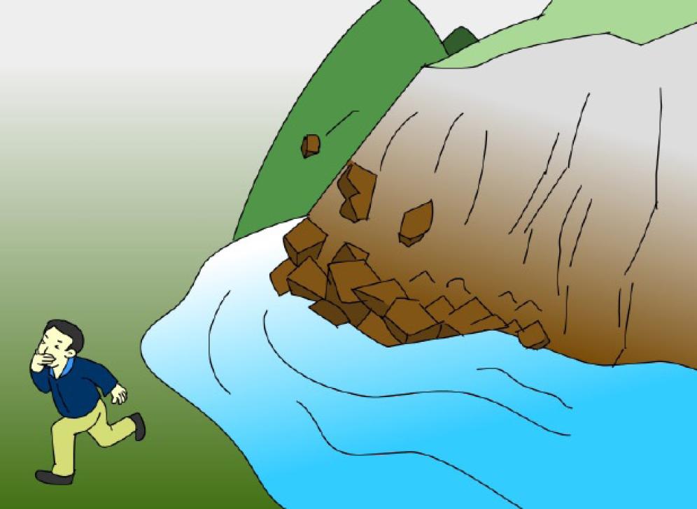 (3)山地发生山崩或沟岸侵蚀时,山上树木发出沙沙的扰乱声,山体出现异常的山鸣。