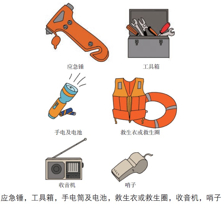 当你开车时遭遇了内涝水灾,你的车内需要以下的物品: