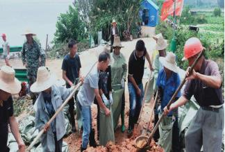 9日,这对父子兵趁未下雨之时,立即组织约200人抢险突击队,戴着红袖章、党徽,举着突击队旗杆,对龙泉湖沿线进行排查,彻夜查险、除险、抢险。
