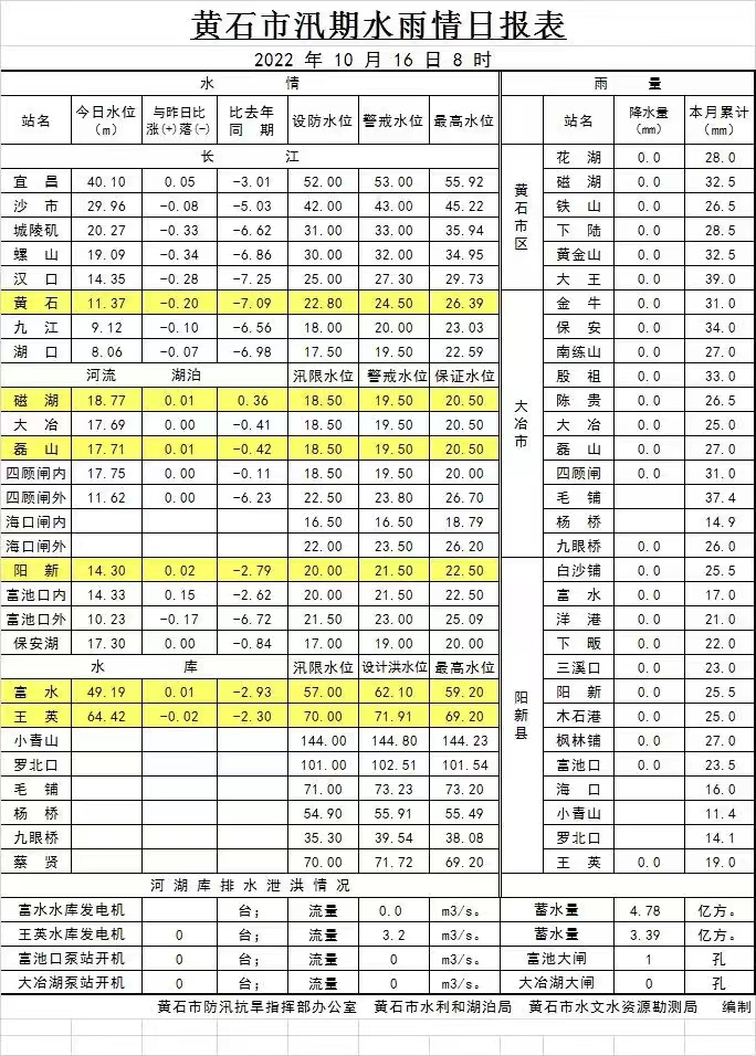 2022年10月16日水雨情日报表