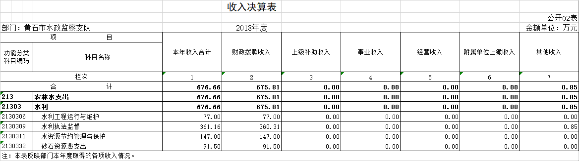 黄石市水政监察支队2018年度部门决算