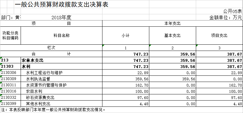 一般公共服务(类)水利(款)行政运行(项)