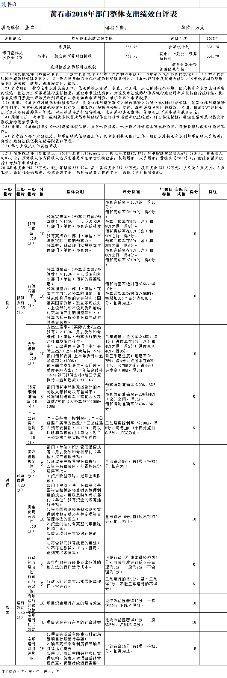 10、部门整体支出绩效自评表