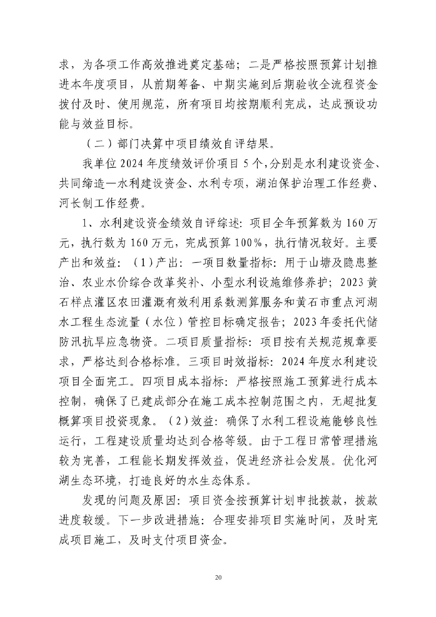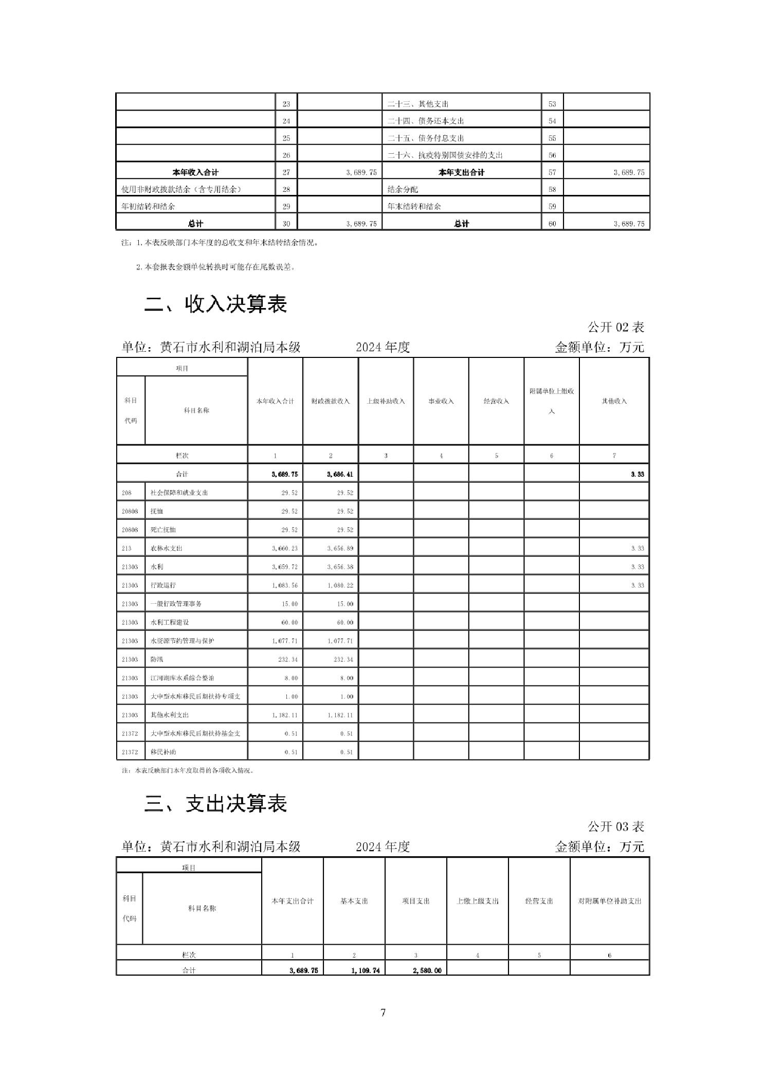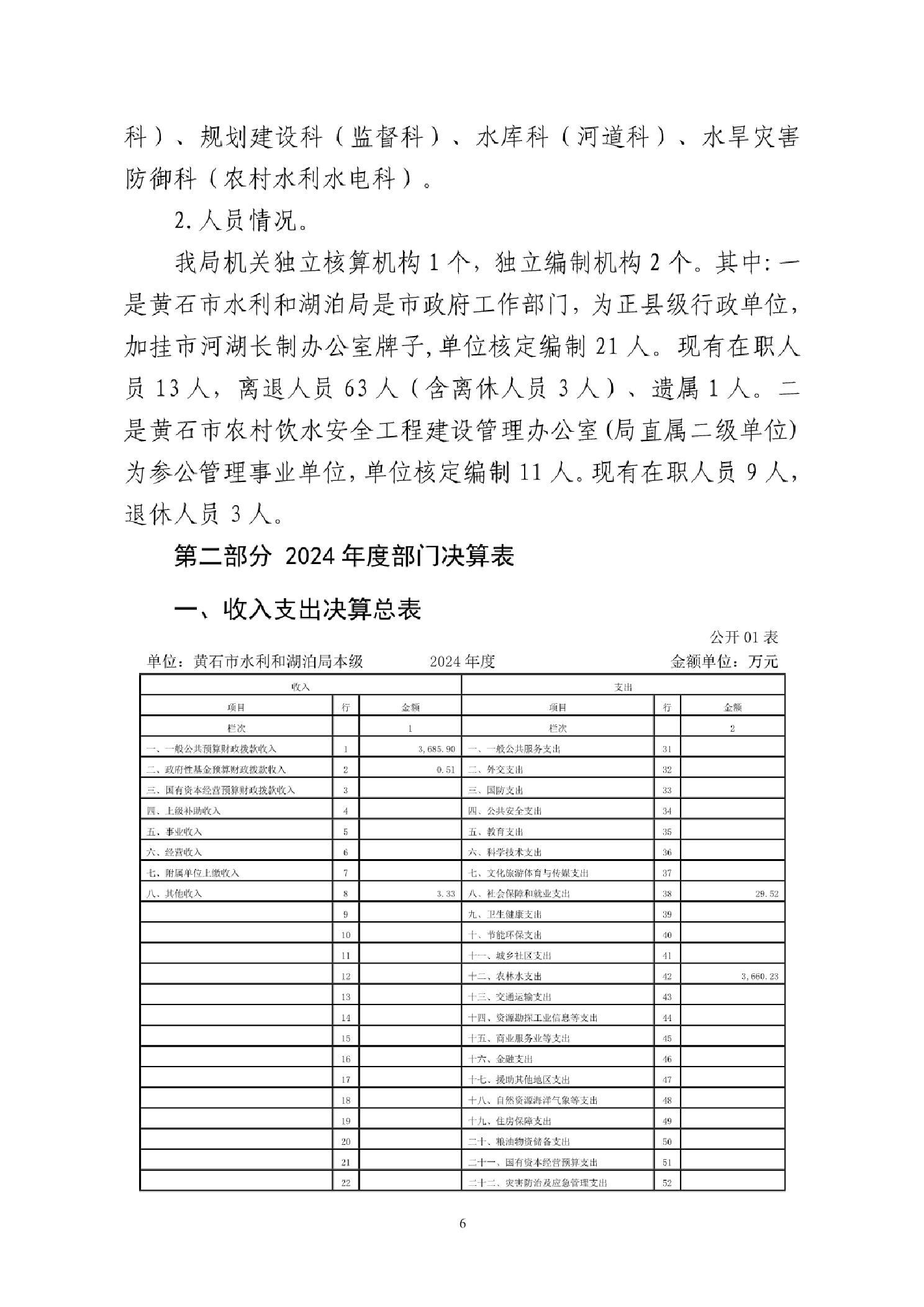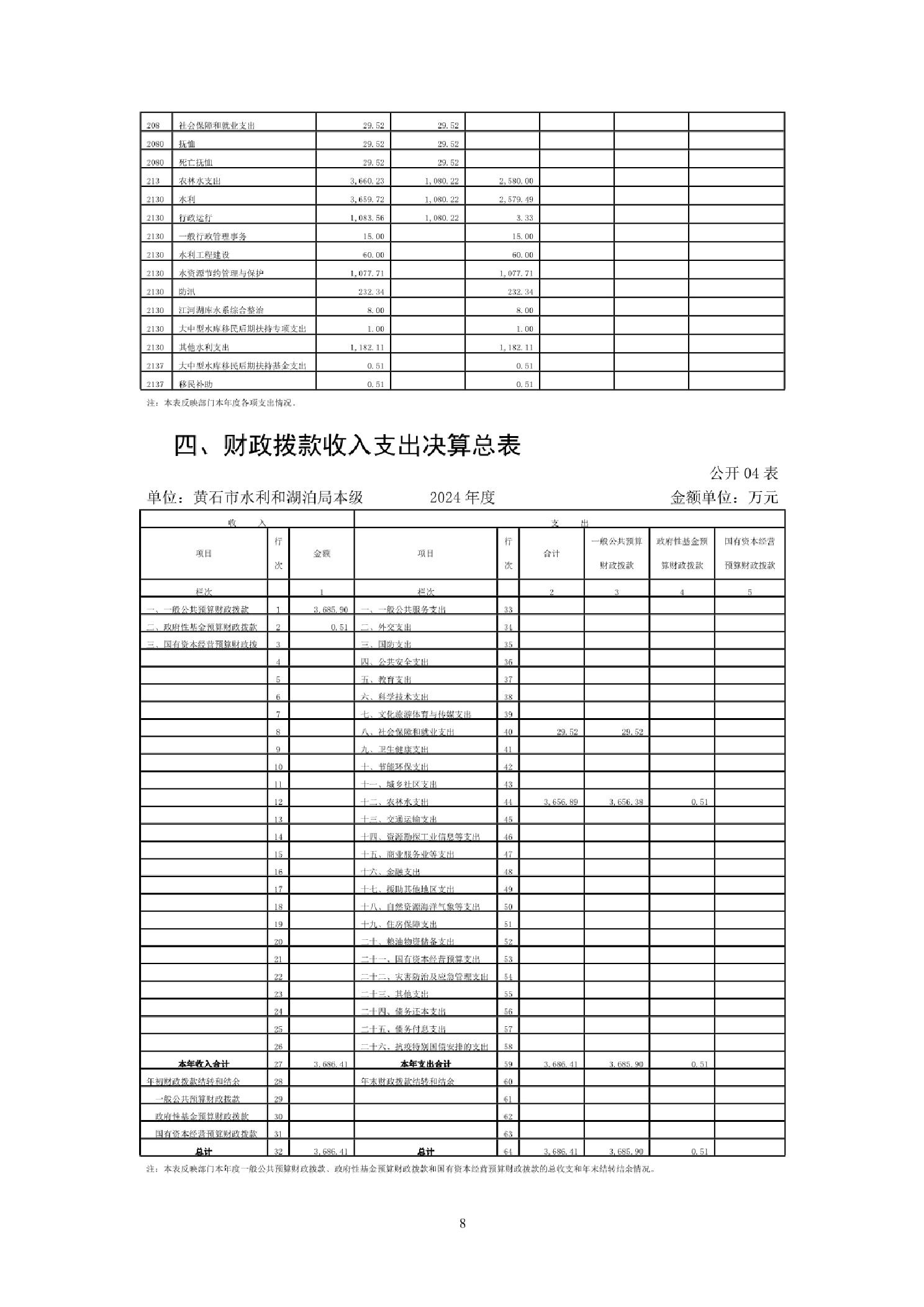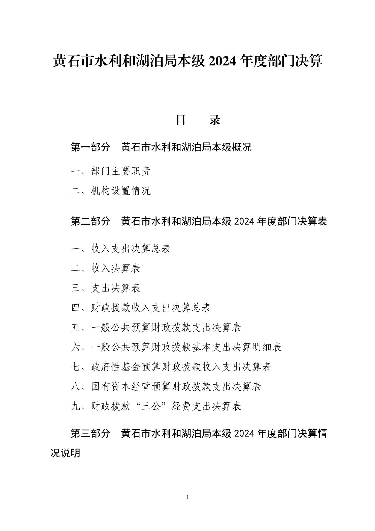 黄石市水利和湖泊局本级2024年度部门决算公开