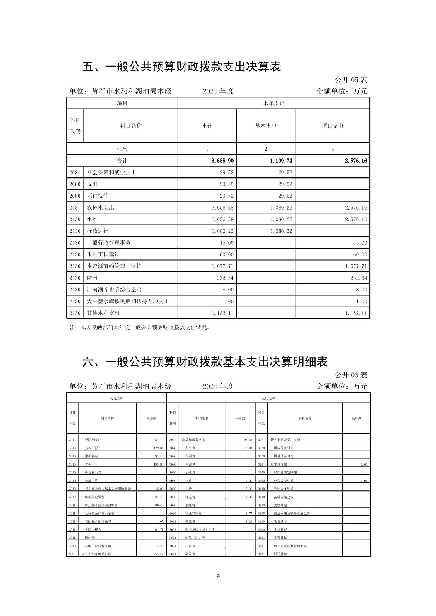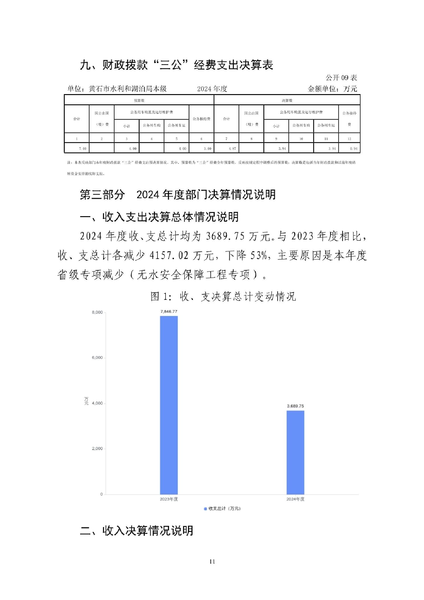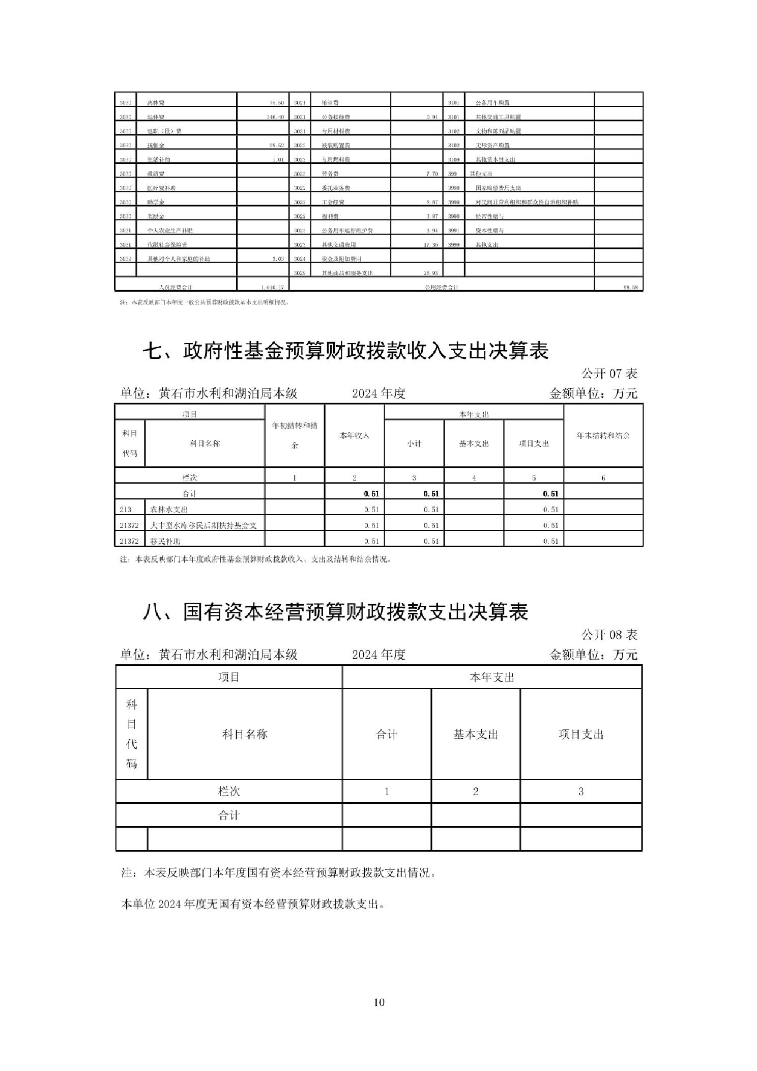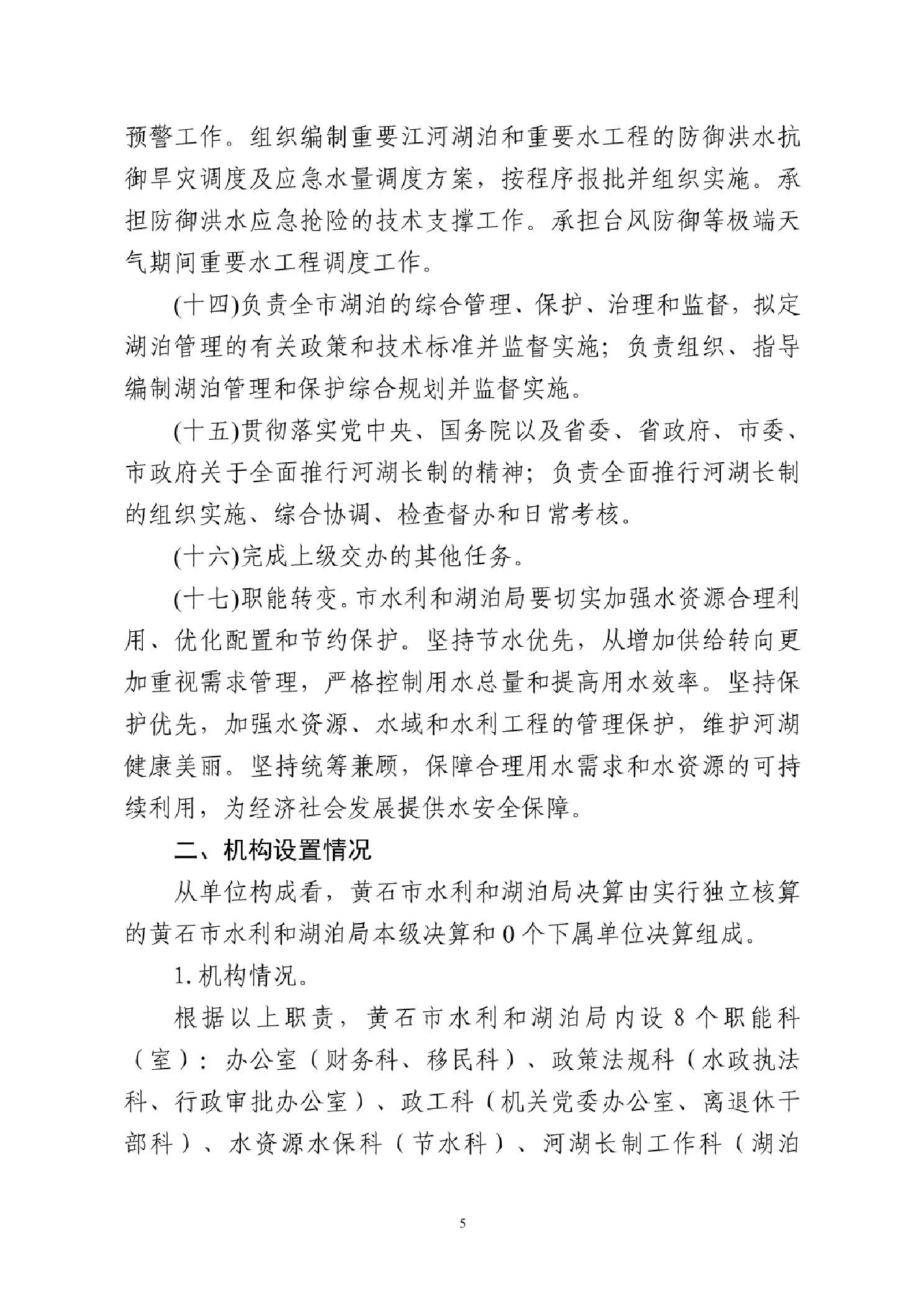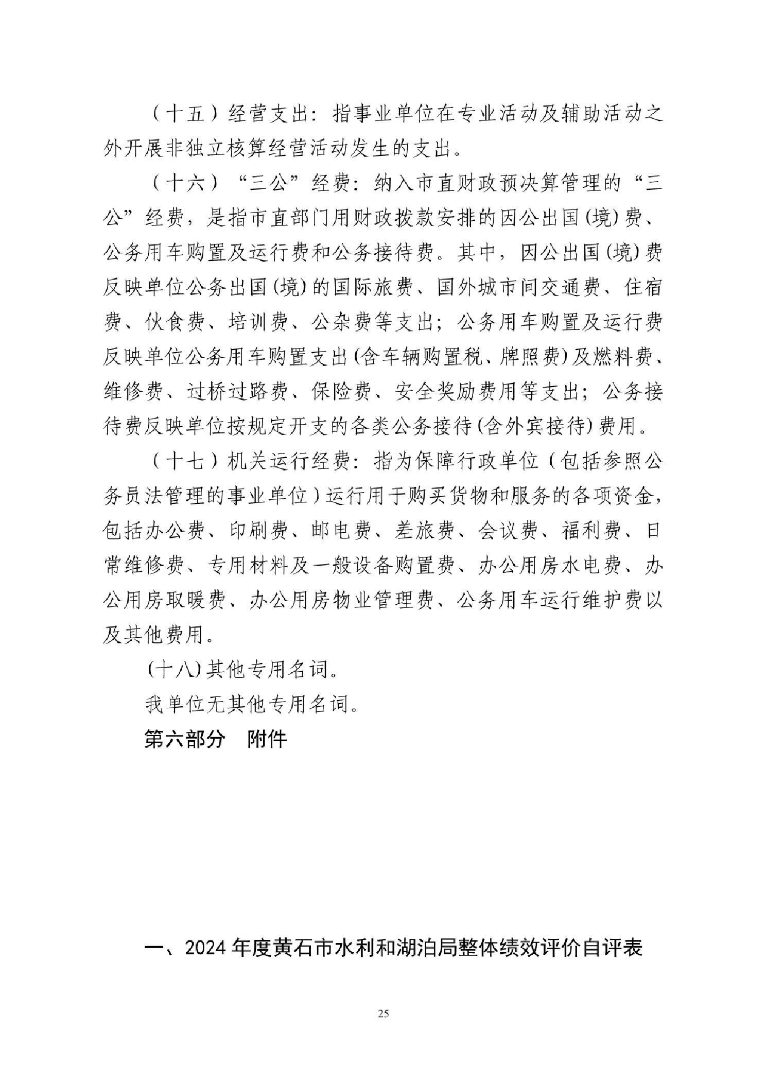 黄石市水利和湖泊局本级2024年度部门决算公开