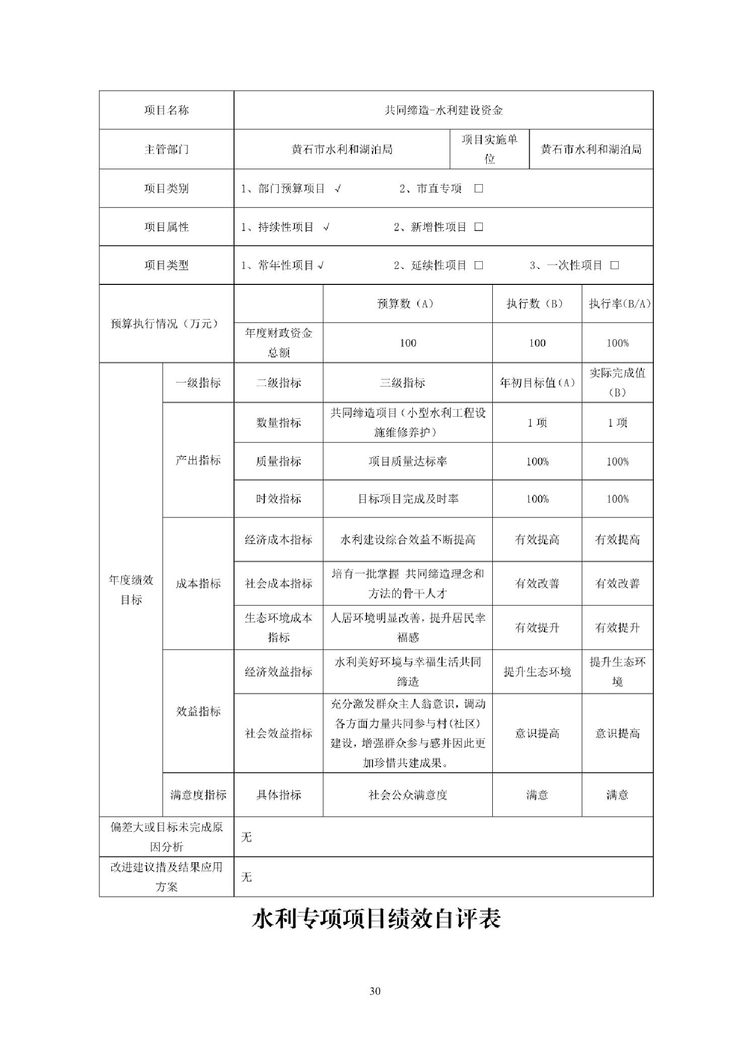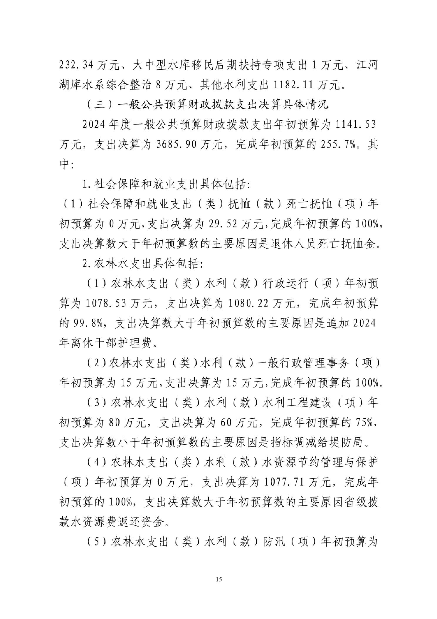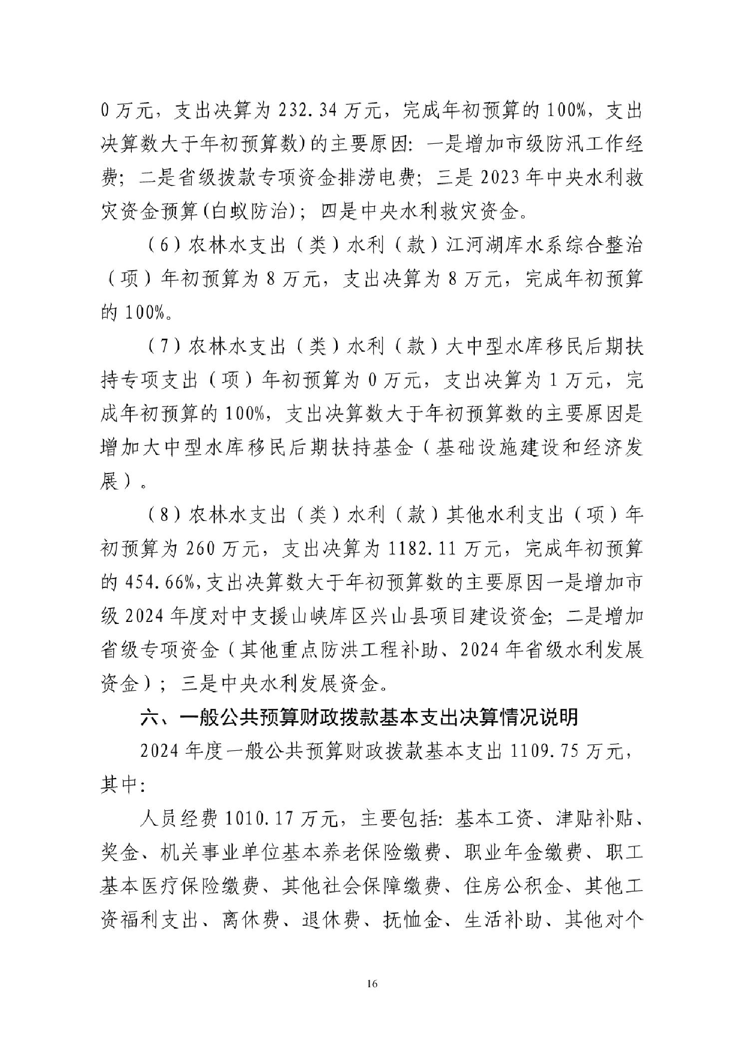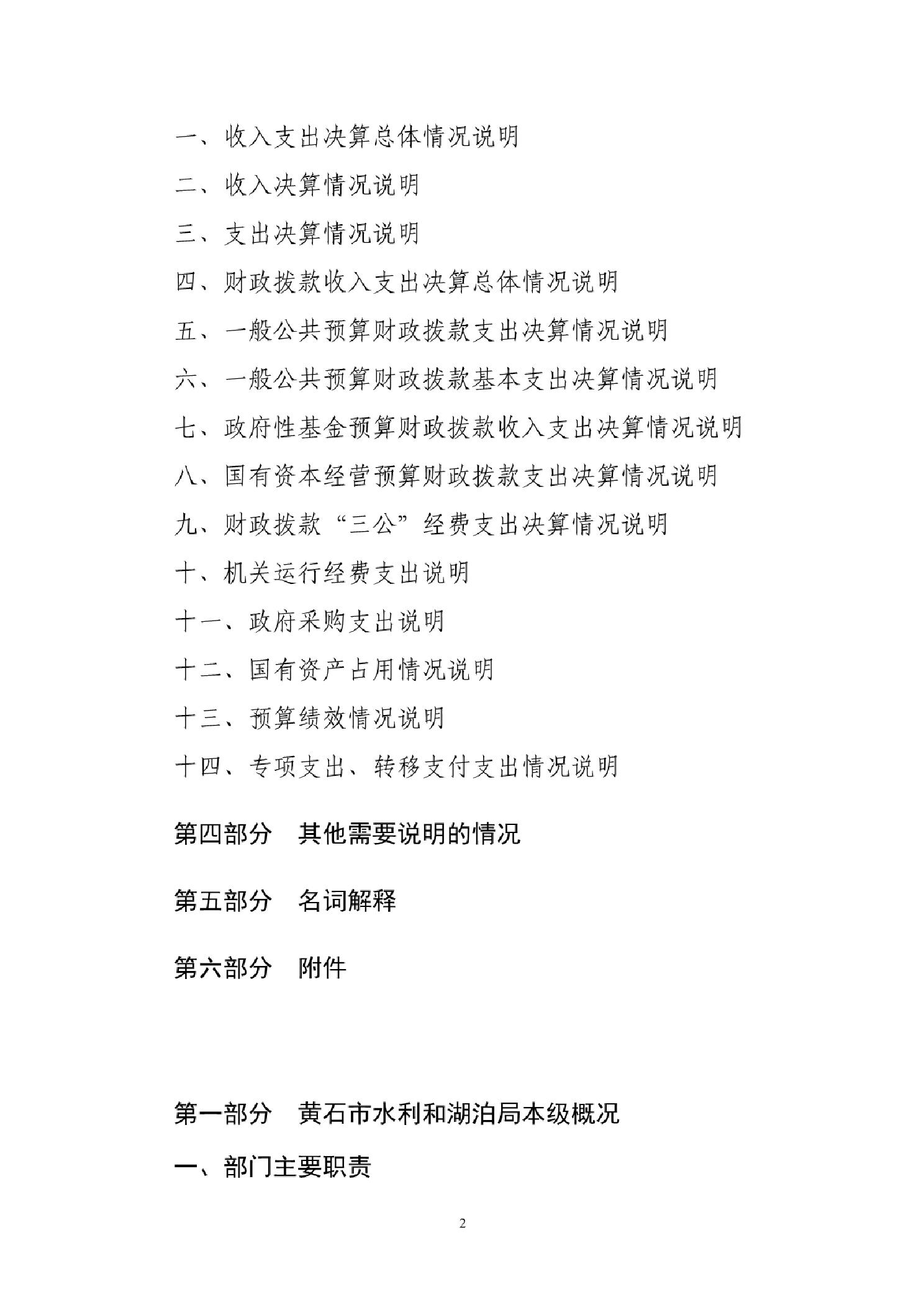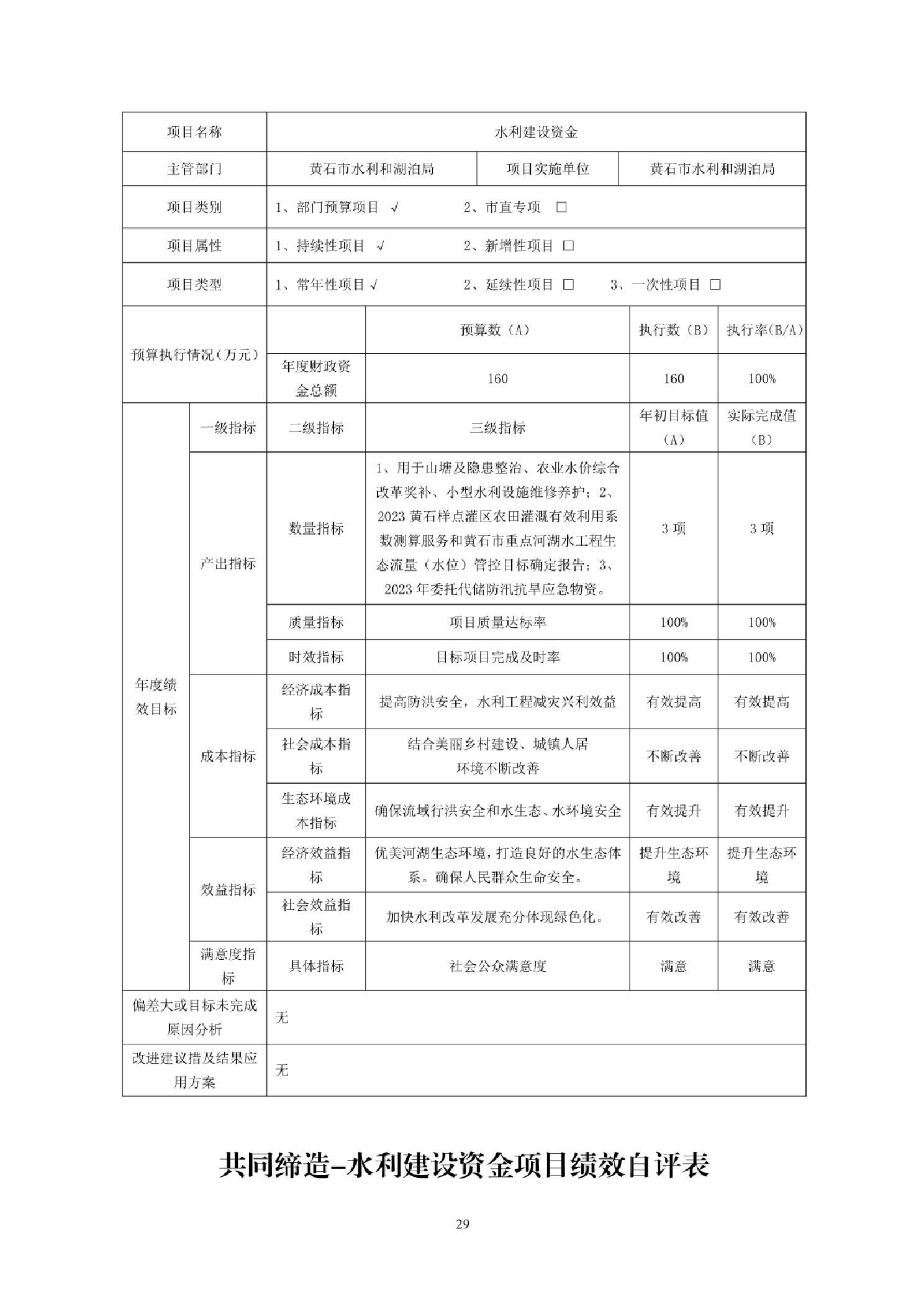 黄石市水利和湖泊局本级2024年度部门决算公开