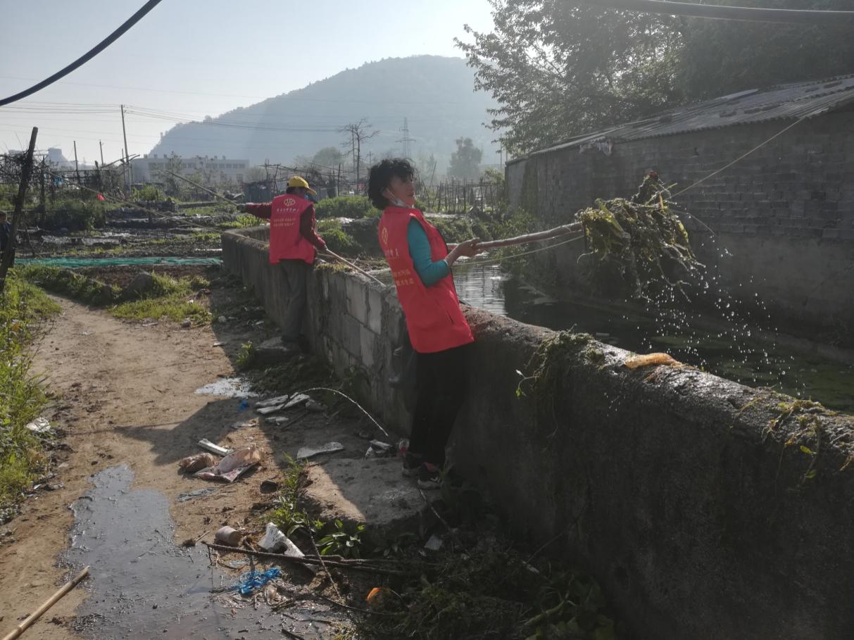 4月14日下午,牧羊湖社区代理河长吴晓蕾带队巡查郭家花园排洪港,发现射击学校段港内又有少量垃圾,护河员用自制的带钩长杆将挂在港内沿壁的垃圾袋、口罩等以及港内生活垃圾进行清理。在上游的堰塘湾段港内,目前正处杂草生长的旺盛期,吴晓蕾要求社区城管办在汛期来临前,制定清理计划,及时组织人员打捞,确保汛期港道畅通。