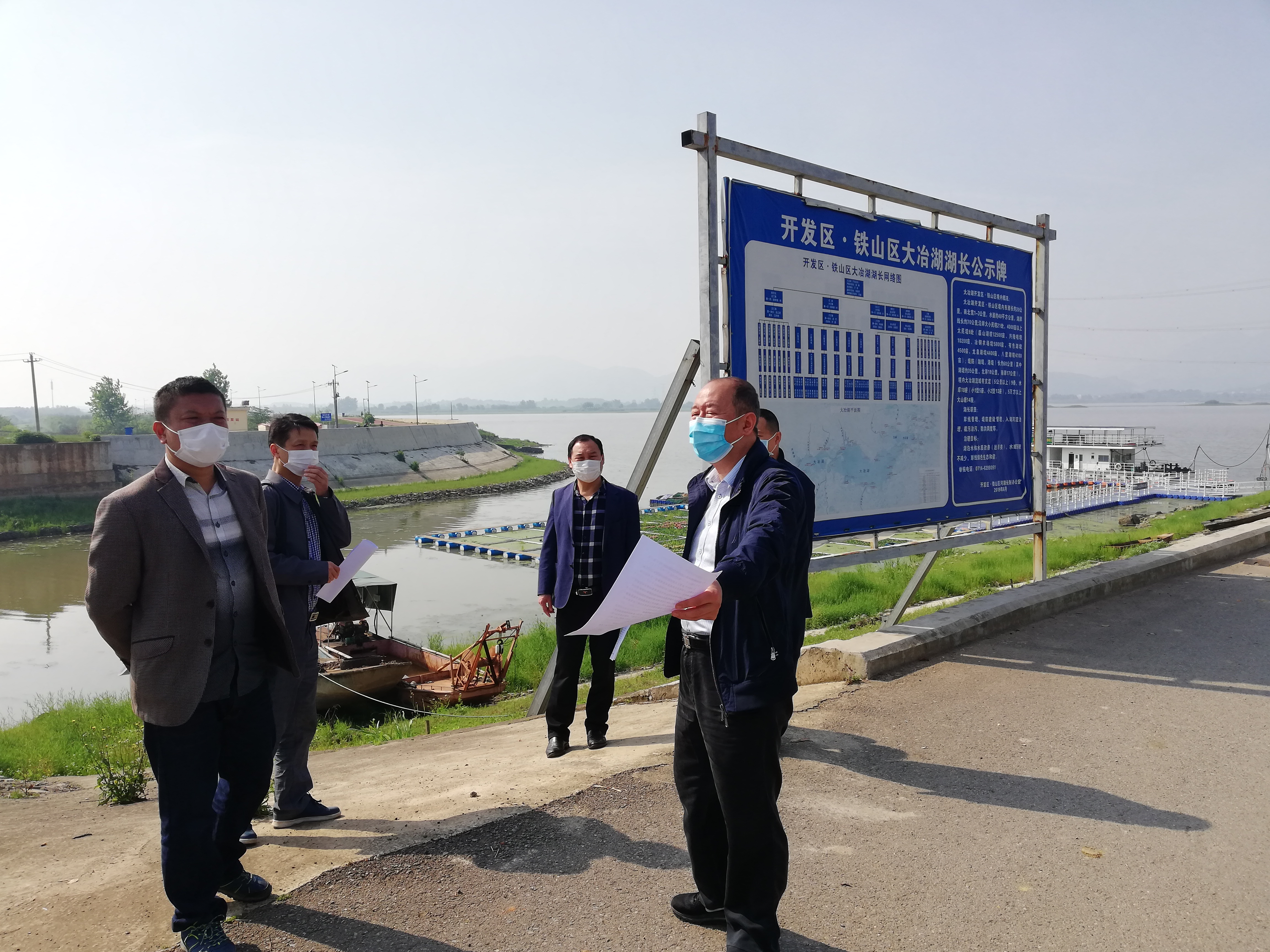 (市生态环境局)为深入落实河湖长制工作,4月24日,大冶湖市级督导部门市生态环境局党组成员刘子俊一行赴开发区·铁山区开展大冶湖巡湖督导工作。