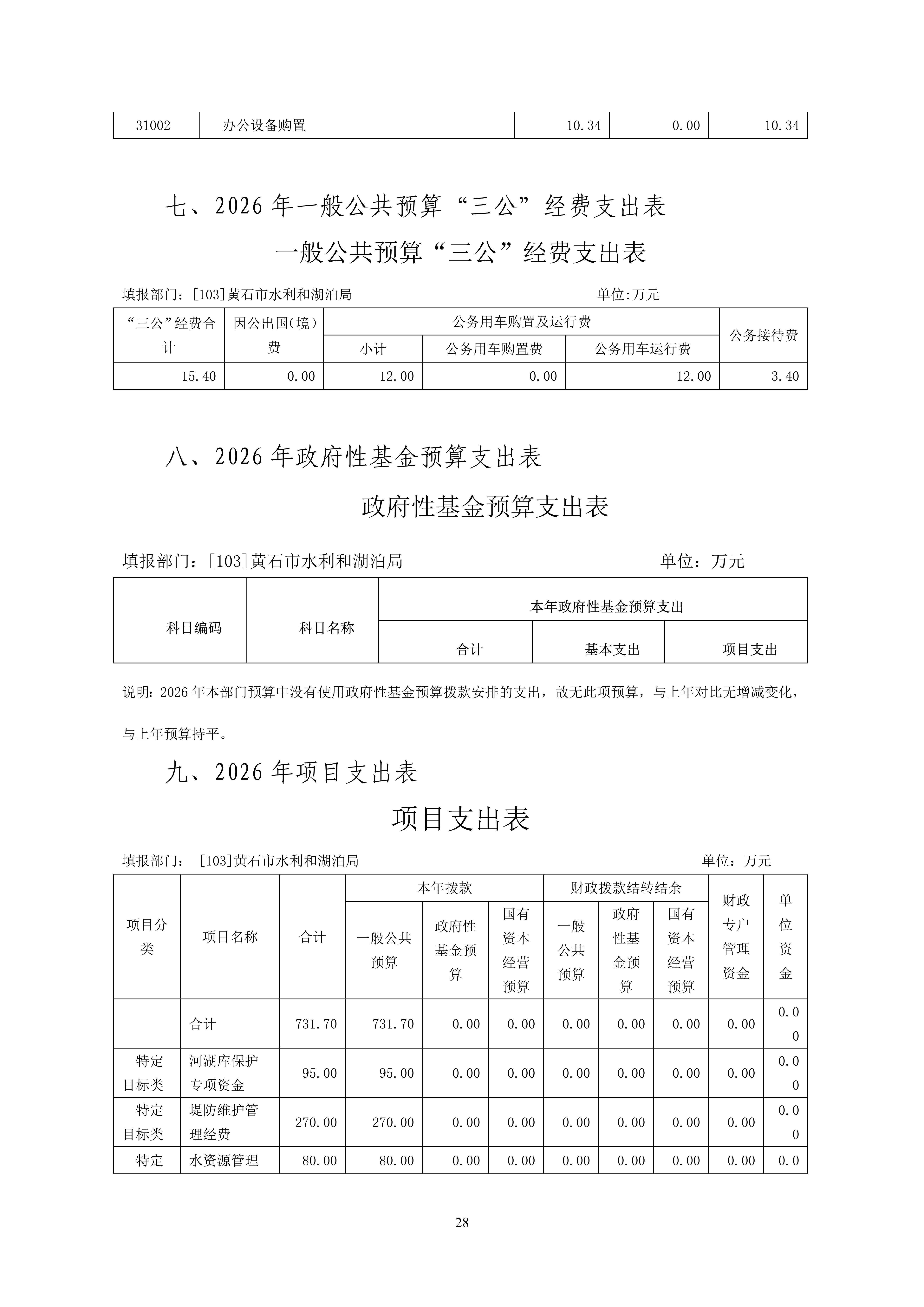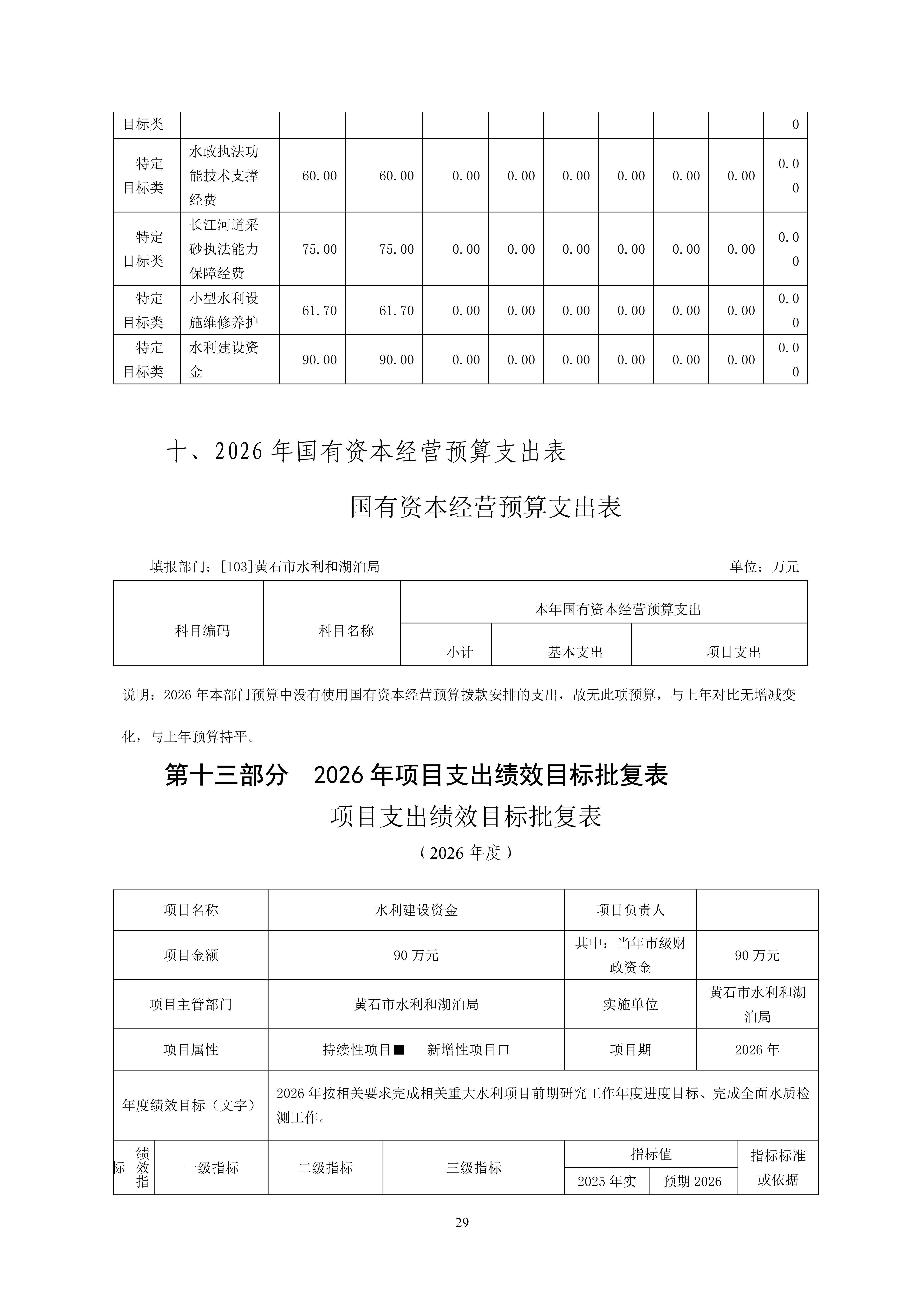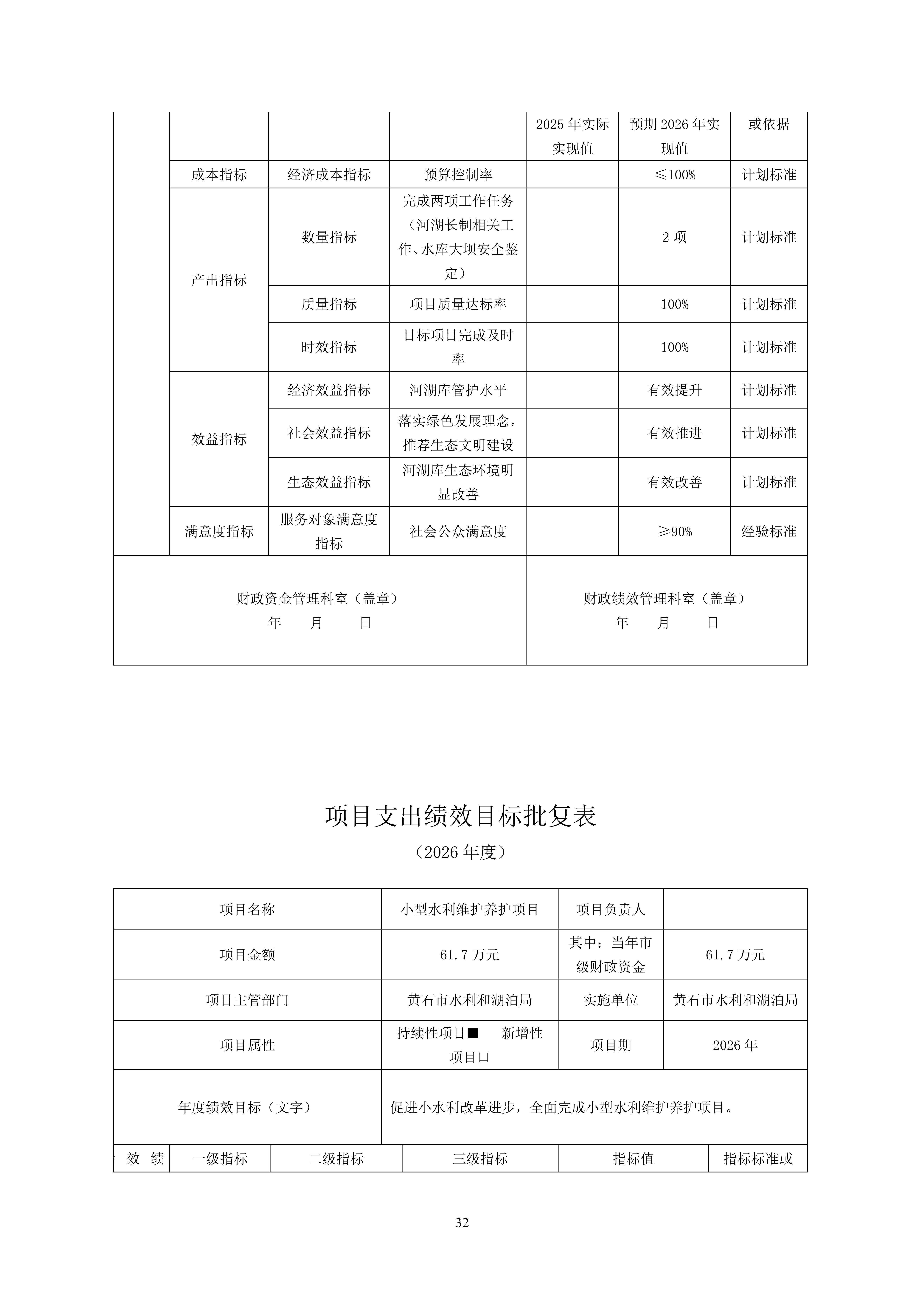进行一次安全鉴定。(4)实施单位:黄石市水利和湖泊局(5)项目期:一年(6)年度预算安排:2026年预算安排80万元,比上年增加80万元,增长1