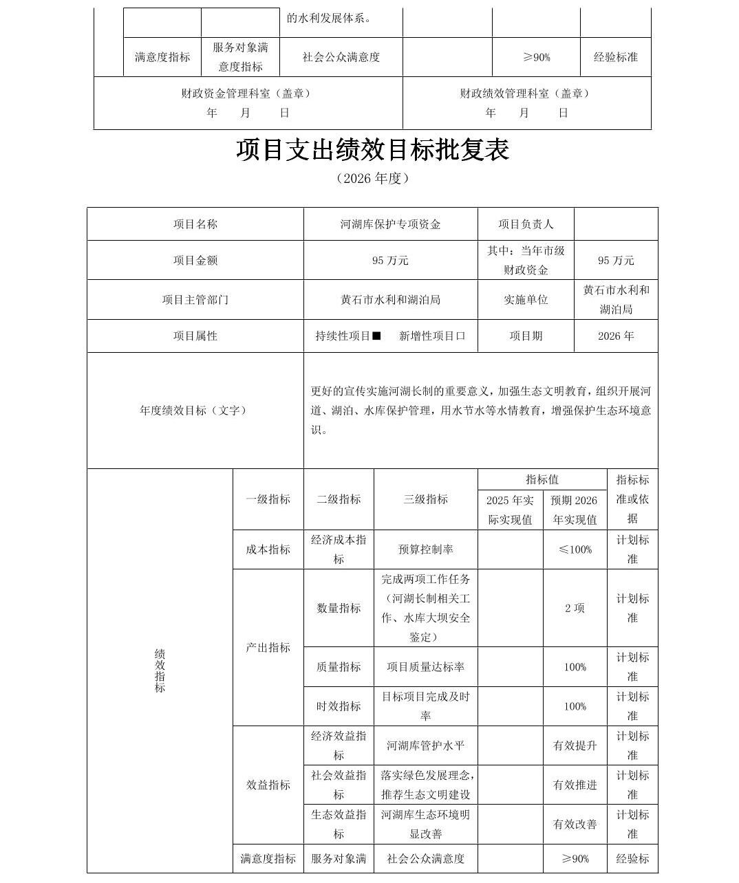 (2)项目内容:主要是河湖长制工作经费和水库大坝安全鉴定。